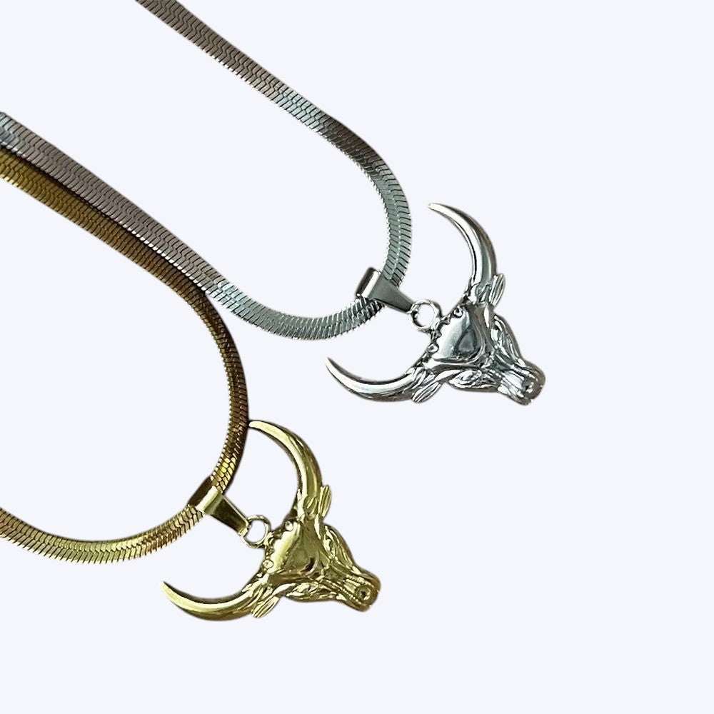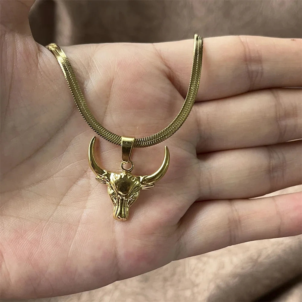 El diseño detallado del toro, con líneas definidas y acabados brillantes, hace de esta pieza una joya llamativa pero con un toque sofisticado. Perfecto para hombres y mujeres que desean un look atrevido pero equilibrado, este collar se adapta tanto a atuendos casuales como más formales, siempre destacando sin perder la clase.